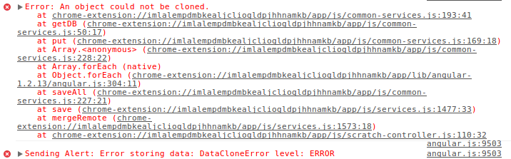 In an AngularJS Google Chrome App that I’m writing, I keep getting a frustrating error when attempting to store data from a remote resource.